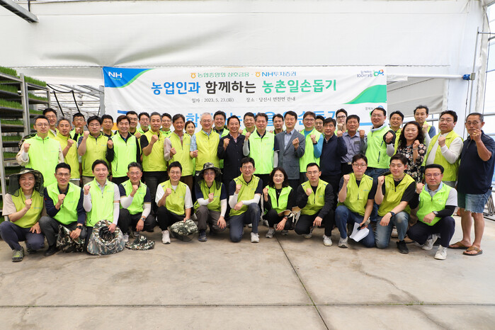농협(회장 이성희) 조소행 상호금융대표이사와 정영채 NH투자증권 대표이사를 비롯한 상호금융부문 임직원과 NH투자증권 임직원 40여 명은 본격적인 농번기를 맞아 23일 충청남도 당진시 육묘장을 방문해 풍년을 기원하며 육묘 경화작업을 도우는 등 범농협 합동 농촌 일손돕기를 실시했다.