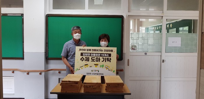[로컬세계 이창재 기자]경북 영양군 입암면 건강마을 건강위원회(위원장 최해선)는 6일 입암면 이장협의회에 방문해 입암면 마을회관 19개소에 이웃주민들을 위해 사용해달라며 위원회 회원들이 직접 제작한 수제 도마를 기탁했다.
