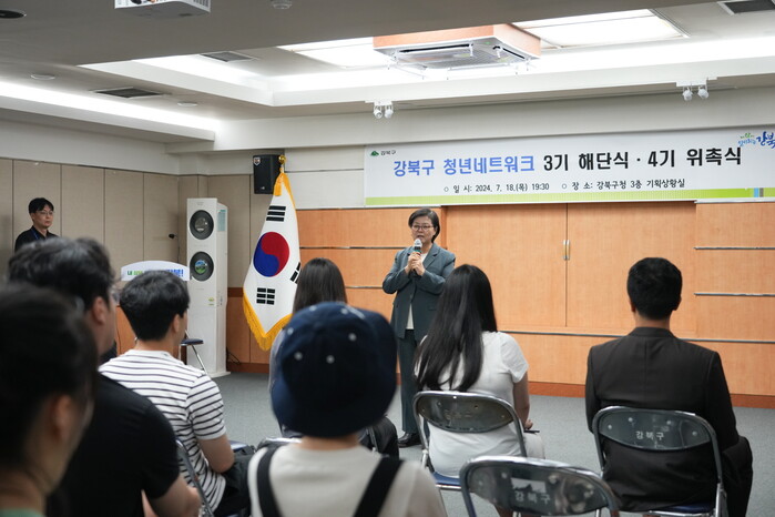 [로컬세계=임종환 기자] 서울 강북구는 지난 18일 강북구청 기획상황실에서 청년네트워크 위원 30여명이 참석한 가운데 3기 해단식과 4기 위촉식을 함께 개최했다고 24일 밝혔다.