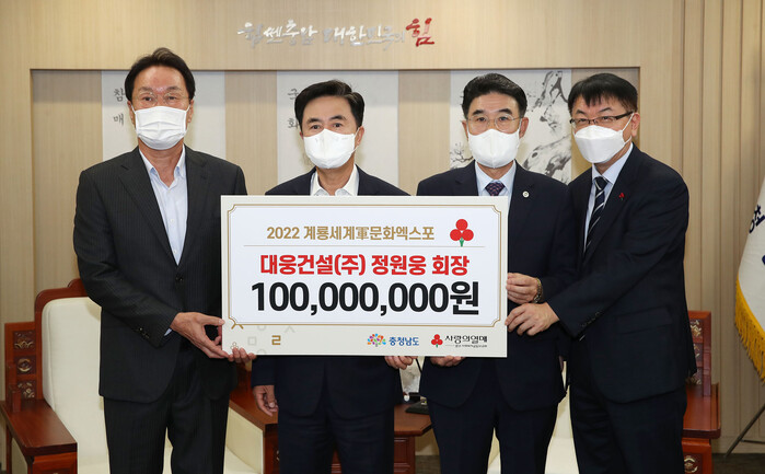 [로컬세계=박명훈 기자] 충남도는 8일 정원웅 대웅건설㈜ 대표로부터 성금 1억 원을 전달받았다고 밝혔다.