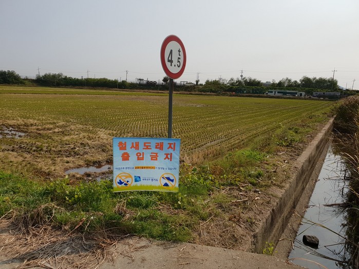 | ▲철새도래지 출입금지판 |