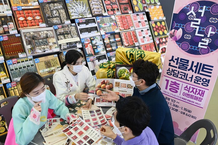 올 설은 지속되는 고물가와 다가오는 경기침체 영향으로 가성비 있는 선물세트를 구매하려는 고객이 늘어날 것으로 예상됨에 따라 다양한 할인 혜택을 받을 수 있는 2023년 설 선물세트 상담코너를 오는 15일까지 운영할 계획이다.
