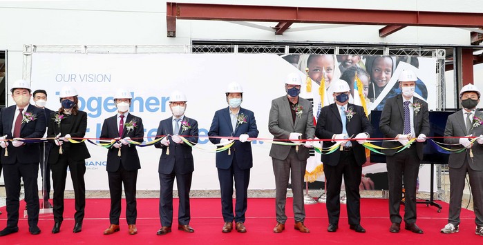 | ▲원삼일반산업단지 내 (주)나노엑스코리아 의료장비 반도체 생산공장 사전 준공식 참석자들이 테이프를 커팅하고 있다. |