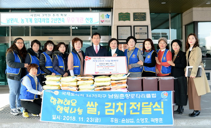 남원춘향로타리클럽이 마련한 쌀과 김장김치는 지난 6일 남원춘향로타리클럽에서 전개한 '사랑 나눔 바자회' 수익금을 통해 마련했다.