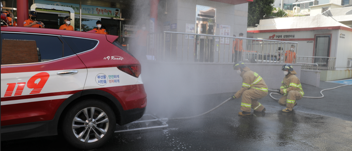 [로컬세계 맹화찬 기자]부산 남부소방서(서장 정영덕)는 지난달 29일 남부소방서 훈련장에서 배터리 냉각용 분무주수관창을 활용한 전기차 화재진압훈련을 실시했다고 3일 밝혔다.