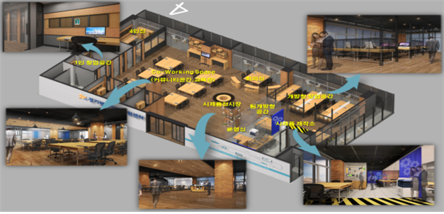 이외에도 ‘메이커 스페이스(Maker Space)’를 조성, 3D프린터, 플로터기, 작업공구 등을 활용해 시제품제작을 할 수 있으며, 제품 사진촬영을 위한 포토 스튜디오, 회의실, 휴게 및 네트워킹 공간을 무료로 지원 받을 수 있다.