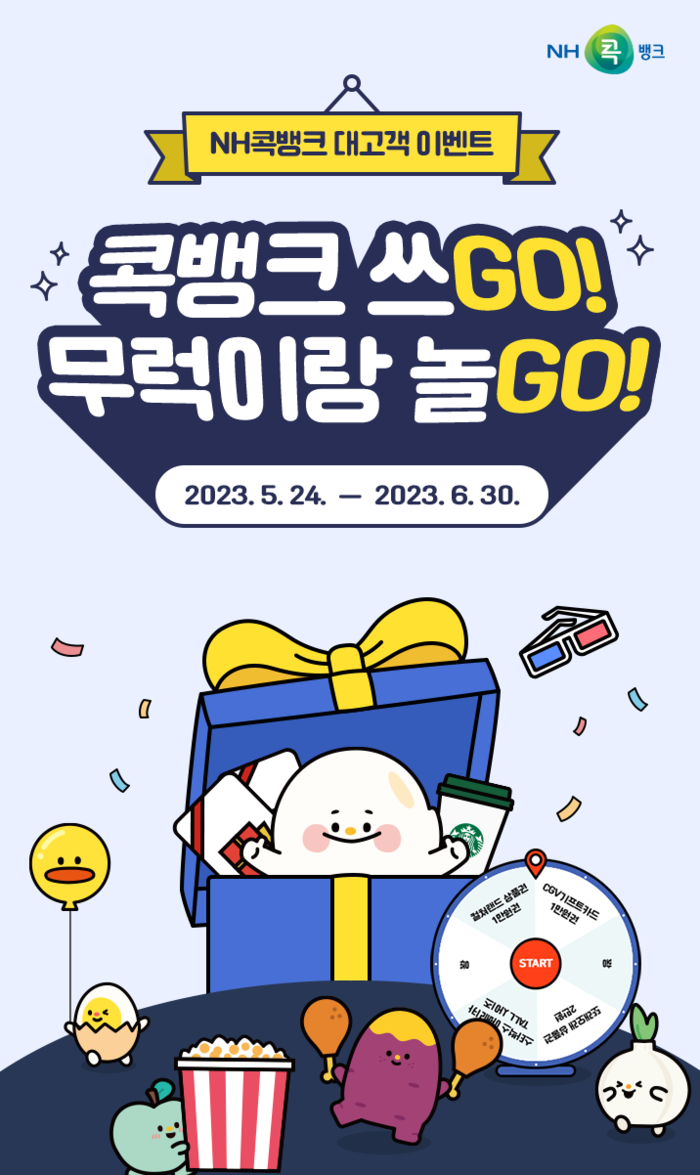 농협(회장 이성희) 상호금융은 오는 24일부터 6월 30일까지 NH콕뱅크에서 '콕뱅크 쓰GO! 무럭이랑 놀GO!' 대고객 이벤트를 실시한다.
