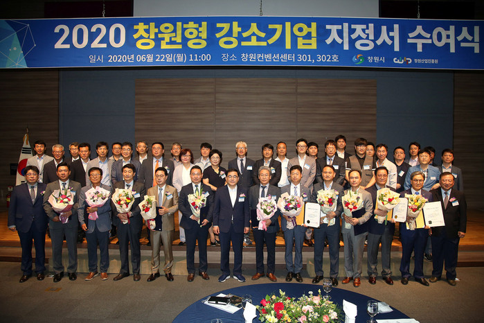 | ▲창원시는 22일 창원컨벤션센터에서 창원경제를 이끌 유망 중소기업 11개사를 ‘2020년도 창원형 강소기업’으로 선정하고 지정서를 수여했다.(창원시 제공) |