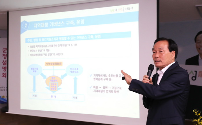 특히 군민들이 지역사회의 주인으로서 참여할 수 있도록 마을자치와 주민자치를 근간으로 삶의 현장 곳곳에 주민 참여 환경을 구축해 지역주도의 변화와 혁신을 이끌어 가고 있다.