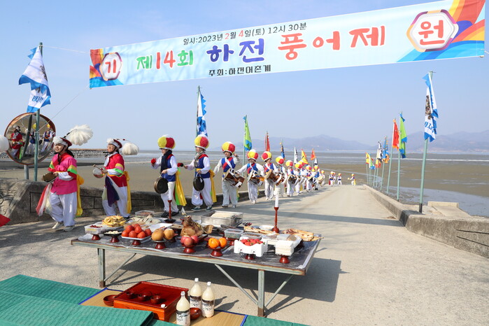 하전 풍어제는 달짚 태우기, 소원지 쓰기, 농악단 풍물놀이로 흥겨움을 더하고 참여자들에게 부럼 등 답례품을 전달했다.