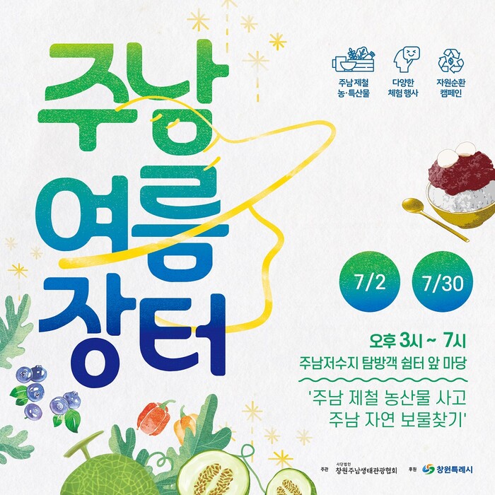 [로컬세계=한용대 기자]경남 창원특례시(시장 홍남표)는 제철 작물들을 가장 신선하고 맛있게 만날 수 있는 ‘주남 여름 장터’를 오는 2일과 30일에 제2회, 3회를 각각 개최한다고 1일 밝혔다.