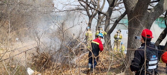 ▲ 소방관이 산불진화를 하고 있다. 고양시 제공 |