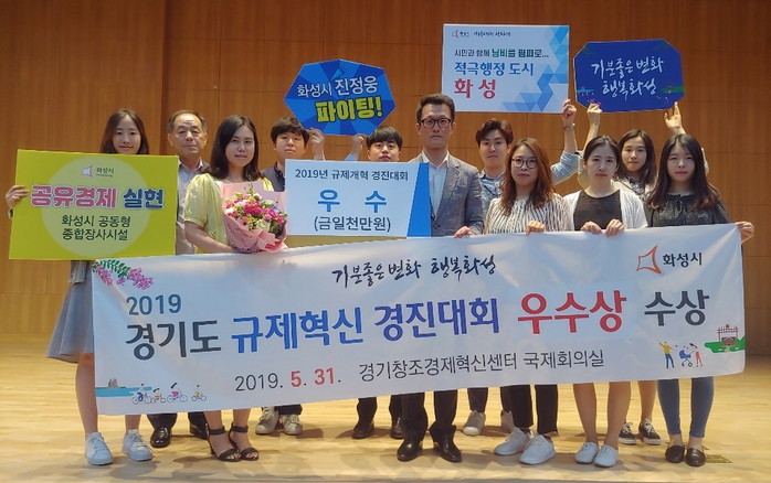 [로컬세계 고용주 기자]경기 화성시가 지난달 31일 경기창조경제혁신센터 국제회의실에서 열린 ‘2019년 경기도 규제개혁 경진대회’에서 우수상을 수상했다고 2일 밝혔다.