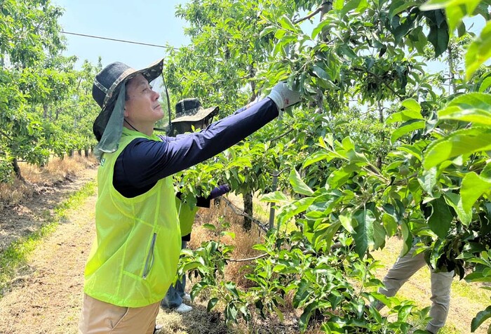 농협경제지주(농업경제대표이사 박서홍)가 5월 열매솎기에 한창인 과수 농가를 돕기 위해 전국 농촌 현장을 찾아 일손돕기 활동을 펼쳤다.