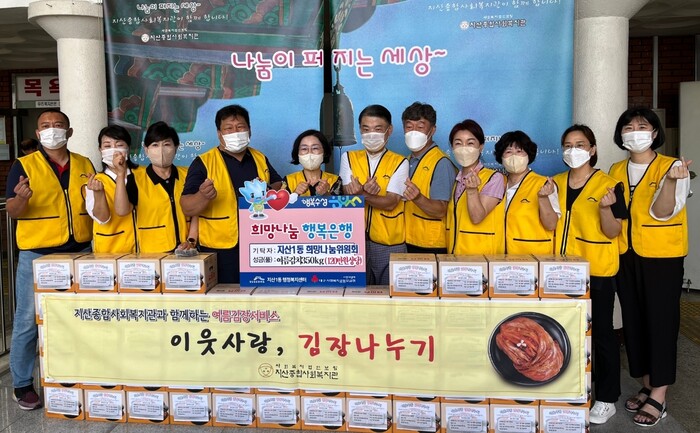 [로컬세계=박세환 기자] 대구 수성구 지산1동 희망나눔위원회(위원장 서신교)는 20일 지산종합사회복지관에서 저소득가구 100세대를 대상으로 여름 김치 350㎏(120만원 상당)를 지원하는 나눔 행사를 가졌다.