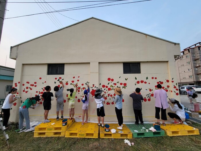 [로컬세계=박상진 기자]경북 의성군(군수 김주수) 안계면 주민자치회는 지난 17일 ‘니캉내캉 만드는 아름다운 벽화 그리기’ 사업의 일환으로 안계면 주민들과 함께 안계면 능금조합의 벽면에 벽화를 그렸다.