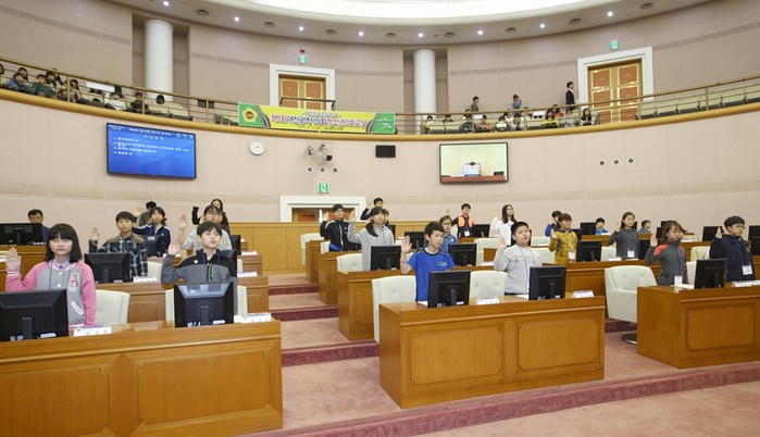 이날 참가 학생들은 시의원과 간부 공무원으로 역할을 분담해 상임위원회별로 학생들이 직접 작성한 조례안 등을 제안 설명하고 찬·반 토론을 거쳐 심사한 후 다시 본회의에서 전자표결을 통해 의결하는 과정을 통해 생생한 의정활동을 체험했다.