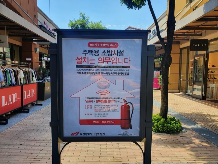 [로컬세계 맹화찬 기자]부산 기장소방서는 관내 대형 판매시설인 신세계사이먼 부산프리미엄아울렛 E/V홀, 각 층별 동선을 활용해 주택용 소방시설 설치 촉진을 위한 이색 배너 홍보를 실시했다고 21일 밝혔다.