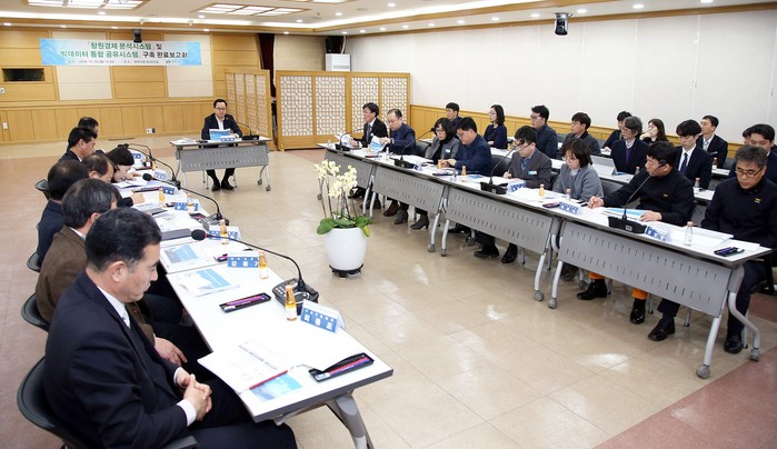 | ▲24일 창원시청에서 정구창 창원시 제1부시장을 주재로 열린 '창원경제 분석 시스템 및 빅데이터 통합 공유시스템 구축 완료 보고서' 사진.(창원시 제공) |