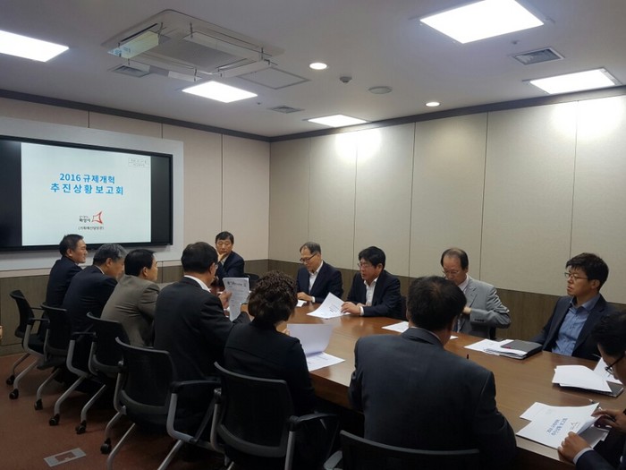 이날 회의는 2016년 규제개혁 추진실적 평가에 대비해 점검하는 자리로 ▲불합리한 중앙법령 발굴·건의 ▲법령 제·개정에 따른 위임조례 정비 ▲불합리한 자치법규 정비 추진상황 보고 ▲기업애로 해결 우수사례 공유와 미진한 부분을 논의했다.