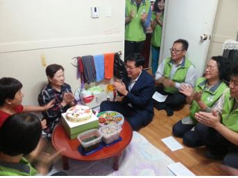 [로컬세계] 동대문구(구청장 유덕열)는 구청 직원들로 구성된 나눔빛봉사단에서 지난 20일 주말을 이용 9월말 ~ 10월 생일을 맞으신 홀몸 어르신 네 가구를 직접 방문해 생일잔치를 열어 드렸다고 밝혔다.