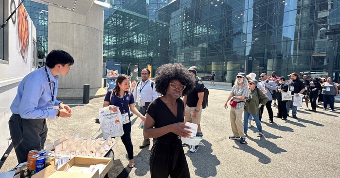 ▲ 뉴욕 IFE 박람회장 앞 K-치킨 푸드트럭 시식 행사 |