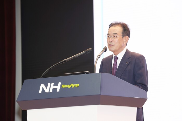 ▲ 11일 서울 중구 농협중앙회에서 열린 '2023 농협 신재생에너지 전국협의회 정기총회'에 참석한 이성희 농협중앙회장이 인삿말을 하고 있다. 농협 제공 |