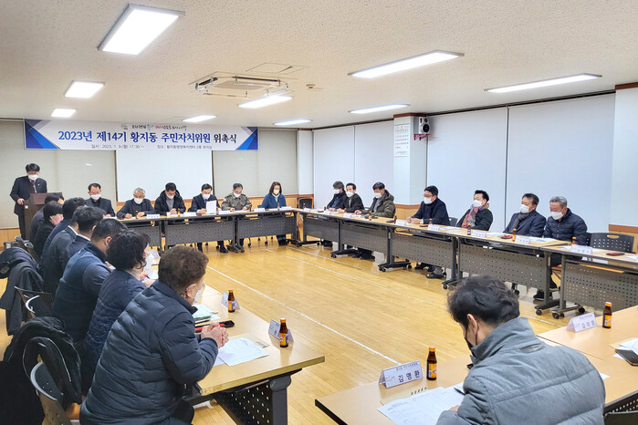 황지동 행정복지센터는 지난해 11월 28일부터 2주간 공개 모집 기간을 갖고 사회단체의 추천을 받아 14기 황지동 주민자치 위원 25명을 최종 선정했다. 제14기 위원의 임기는 2023년 1월부터 2년간이며 주민의 문화·복지·편익 증진과 자치활동, 지역공동체 형성 등 다양한 분야에서 활동하게 된다.