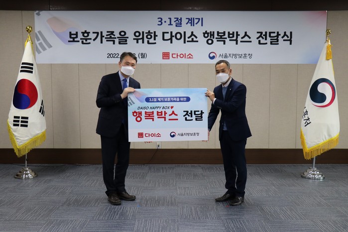 균일가 생활용품점 (주)아성다이소가 3·1절을 맞아 독립유공자 후손 및 보훈가족에 행복박스를 전달했다고 2일 밝혔다.
