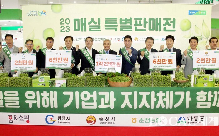 농협경제지주는 ㈜홈앤쇼핑, 매실 주산지 지자체(광양·순천·하동) 및 순천농협이 공동 조성한 1억2000만원의 후원금을 재원으로 ‘매실 소비촉진 상생마케팅 할인행사’를 실시한다.