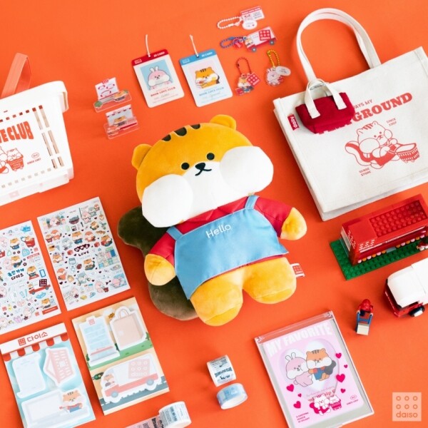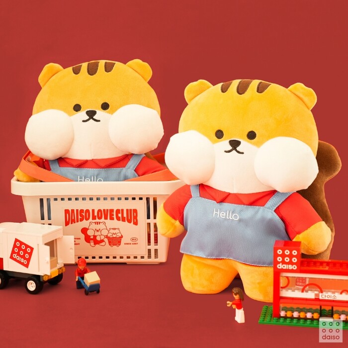 다이소 굿즈는 다이소 대표 캐릭터 중 하나인 ‘볼이 빵빵한 친구들 캐릭터’로 귀엽게 표현한 게 특징이다. ‘유니폼 다람쥐 인형’은 ‘볼이 빵빵한 친구들 다람쥐 캐릭터’가 다이소 매장 유니폼인 빨간 피케 셔츠와 파란 앞치마를 입고 있는 디자인으로 나와 눈길을 사로잡는다. ‘스탠딩 점착 메모지’는 점착 메모지를 세워서 사용할 수 있는 상품으로 세워진 모습이 매장을 연상시킬 수 있도록 상단에 다이소 로고가 디자인됐고, 점착 메모지도 다이소 쇼핑백, 쇼핑 바구니, 다이소 물류차 등으로 구성해 더욱 재밌게 느껴진다. ‘수납 바구니’는 쇼핑 바구니 형태로 전면에 ‘DAISO LOVE CLUB’ 레터링과 ‘볼이 빵빵한 친구들 캐릭터’로 디자인되어 수납용도 뿐만 아니라 인테리어 소품으로도 사용하기 좋다.