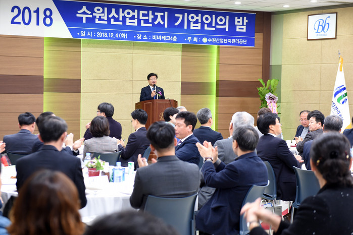 염태영 시장은 지난 4일 권선구 ㈜비비테크 컨벤션에서 열린 ‘2018 수원산업단지 기업인의 밤’ 행사에서 “우리 시는 첨단산업 기반의 경제생태계를 조성하고, 기업의 기술개발과 해외 판로 확대를 위한 산업·행정 협력을 더욱 공고하게 할 것”이라며 “수원산업단지는 우리 시 미래경제를 이끌어갈 주역”이라고 말했다.