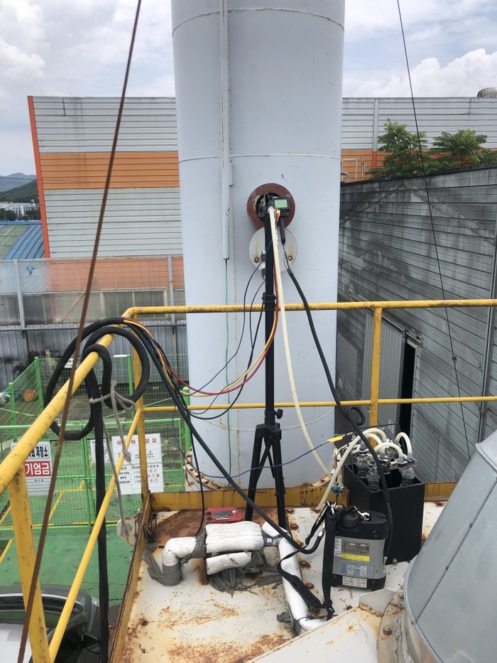| ▲배출구에 설치된 측정구에서 먼지, THC(총탄화수소) 측정중인 모습. 용인시 제공 |