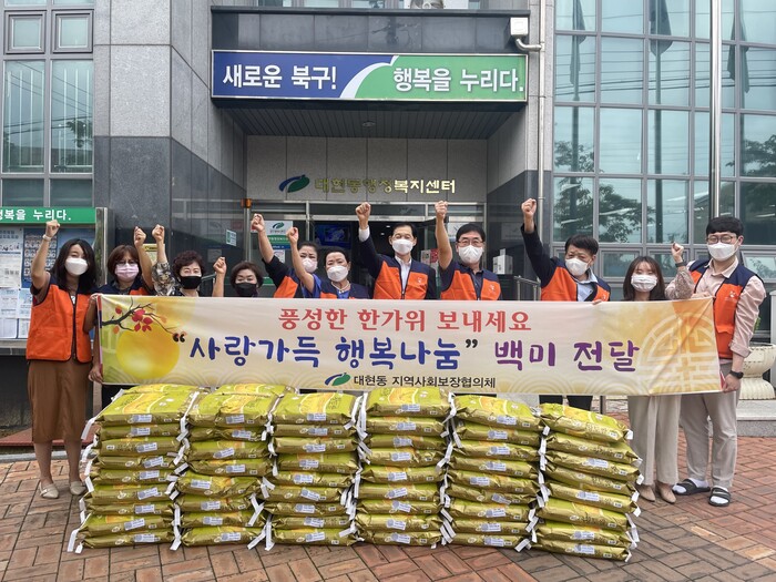 [로컬세계=박세환 기자] 대구광역시 북구 대현동 지역사회보장협의체는 9월 1일 추석명절을 맞아 대현동 행정복지센터를 방문하여 백미 10kg 100포를 기부했다.
