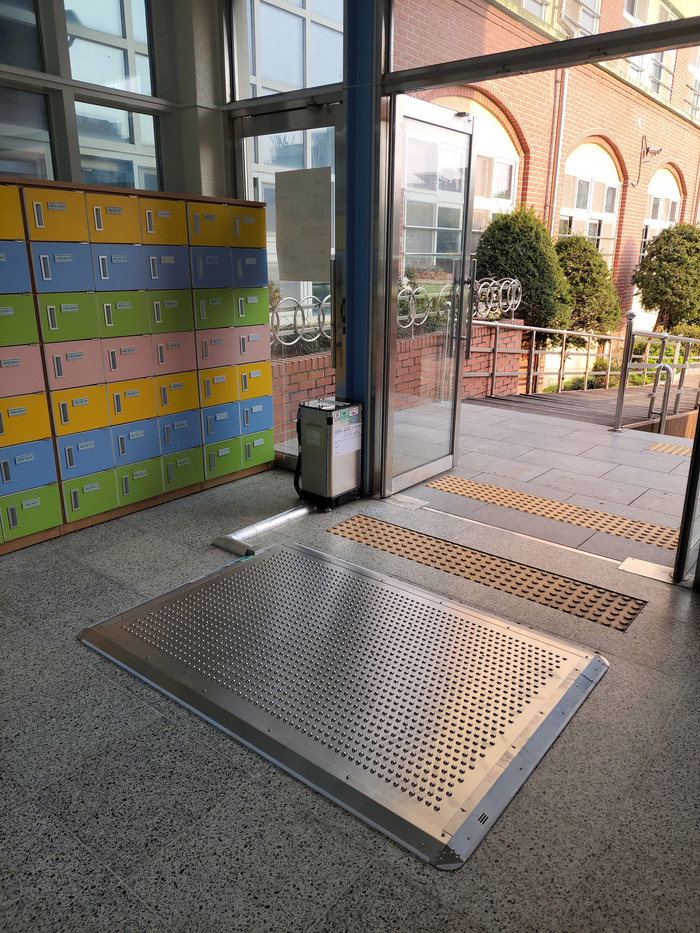 | ▲흡입클린매트 설치한 성남지역 금상초교 현관. |