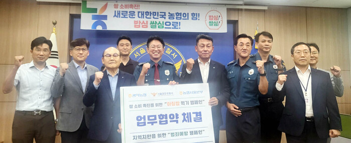 농협 서울본부(본부장 김상수)는 2일 금천경찰서에서 우리 쌀 소비촉진 및 아침밥먹기 운동 추진, 지역치안을 위한 범죄예방 캠페인에 대한 업무협약을 체결했다.