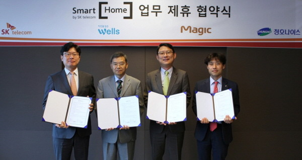 SK텔레콤은 오늘(27일) 가전제품 렌탈 업체인 교윈웰스, 동양매직, 청호나이스와 MoU를 체결하고 오는 10월까지 출시 예정인 협력 3개사의 제품에 스마트홈 서비스를 적용하기로 했다고 발표했다.