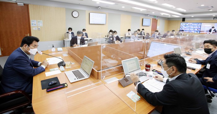 | ▲백군기 용인시장이 9일 시청 영상회의실에서 열린 시정전략회의에서 오는 10월부터 시범운행 예정인 ‘Y버스’ 가 차질 없이 운영될 수 있도록 행정력을 집중할 것을 주문하고 있다. 용인시 제공 |