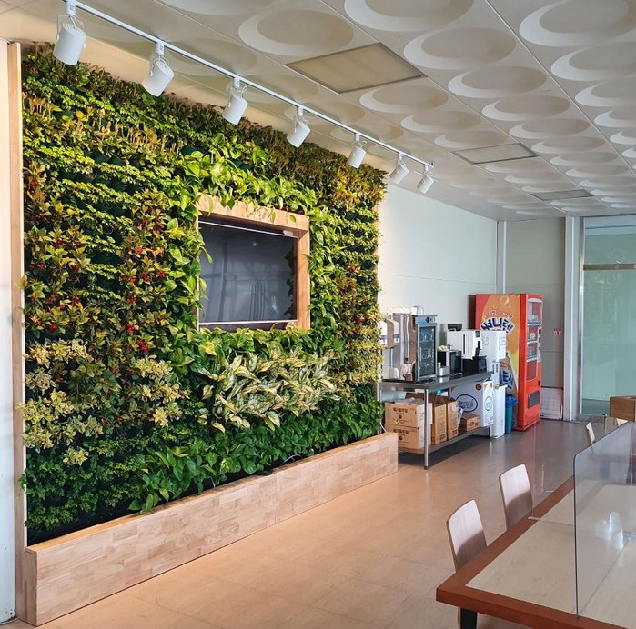 식물은 공기 정화 능력이 탁월한 산호수 등1,528본을 식재했다. 식물 생육상태에 따라 물을 자동으로 공급하는 자동관수장치, 식물 생장에 도움을 주는 생장조명을 설치했으며, 유지관리의 편의성을 위하여 스마트폰에서 조작 가능하도록 했다.