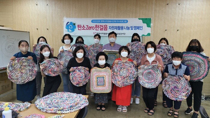 [로컬세계=김병민 기자]경기 평택시자원봉사센터의 전문교육 강사단(단장 최동희)은 ‘탄소 Zero 한걸음’ 봉사활동을 진행하고 지난 21일 활동 결과물인 양말목 매트를 평택시유기동물보호소에 전달했다.