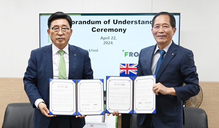 한국농수산식품유통공사(사장 김춘진)는 지난 22일 서울 양재동 aT센터에서 ‘2024 스마트 귀농귀촌 청년창업 박람회(Y-FARM EXPO 2024)’에 참가한 뉴질랜드 한상기업 ‘프롬케이’ 이기흥 부사장과 K-푸드 수출 경쟁력 강화와 글로벌 저탄소 식생활 확산을 위한 업무협약을 체결했다.