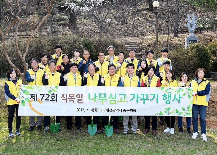 이번 식목행사는 의원 및 사무국직원 등 25명이 참여해 대흥동 테미공원 일원에 왕벚나무 50그루를 식재했다.