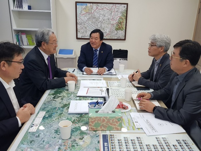 ▲방재율 의원이 29일 경기도의회 고양상담소에서 학교폭력 관련 교육적 해결을 위한 논의 진행하고 있다.(경기도의회 제공) |