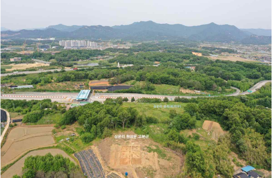 ▲완주 상운리 원상운 고분군 발굴 조사지역 원경. 문화재청 제공 |