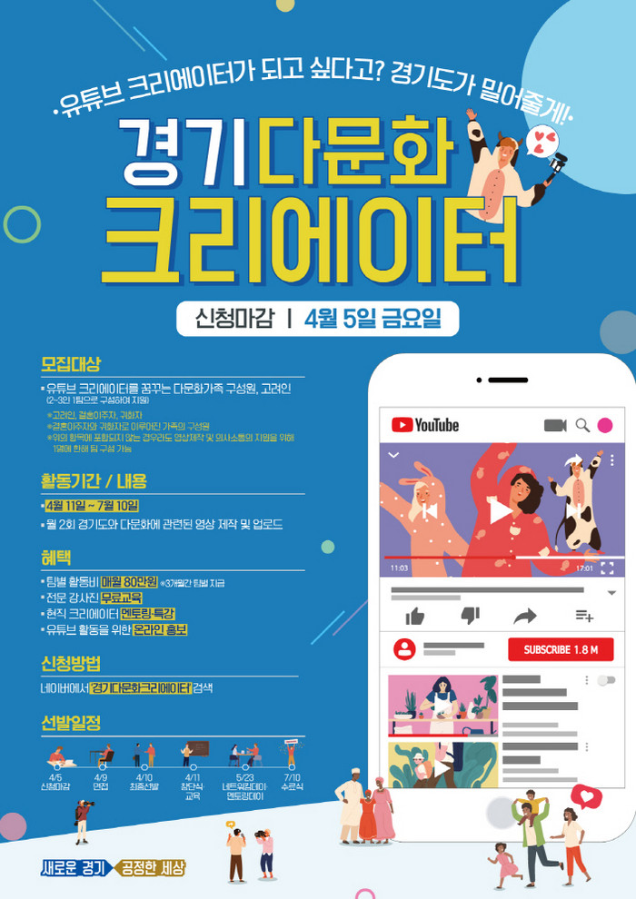 접수는 ‘경기도다문화크리에이터’(https://ggdmh.modoo.at)를 참고하면 된다.