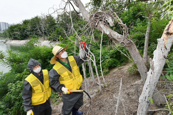 수원시 공직자와 환경단체 회원 등 10여 명은 축만제 내 인공섬에서 생활 쓰레기·고사한 나뭇가지 등 폐기물을 수거하고, 가시박·환삼덩굴 등 생태계 교란 야생식물을 제거했다.