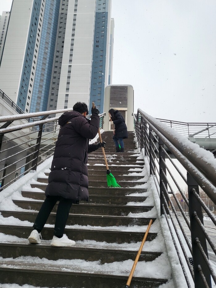 또한 청사 앞 인도와 건널목에 쌓인 눈을 청소하여 청사를 이용하는 시민들의 안전과 편의를 확보했다.