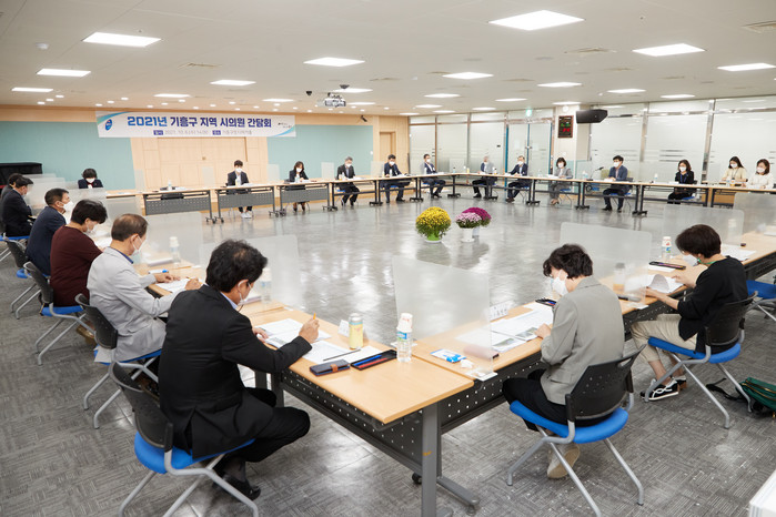 [로컬세계 김병민 기자]경기 용인시 기흥구는 구청 다목적홀에서 용인시의원과 간담회를 열고 2022년 본예산 편성을 위한 주요 사업과 지역 현안 사항 등을 논의했다고 7일 밝혔다.