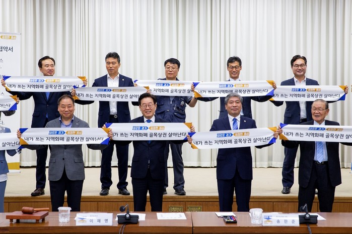 한편 이날 협의회에서는 ‘경기지역화폐 활성화를 위한 경기도 노사민정 공동상생 선언문’을 채택하는 시간도 가졌다. 참석자들은 ‘내가 쓰는 지역화폐 골목상권 살아난다’라고 적힌 피켓을 들어 보이며 경기지역화폐 이용에 적극 협력해 골목상권과 소상공인의 매출증대 및 지역경제 활성화, 일자리 창출에 함께 힘쓸 것을 다짐했다.
