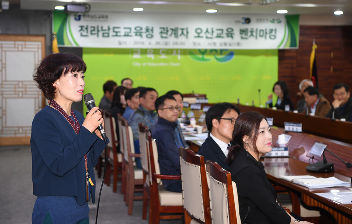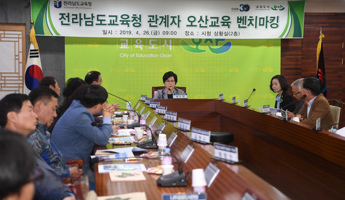 | ▲26일 오산시청을 찾은 전라남도 교육청 직속기관장들이 오산교육을 벤치마킹하기 위한 간담회에 참여하고 있다.(오산시 제공) |